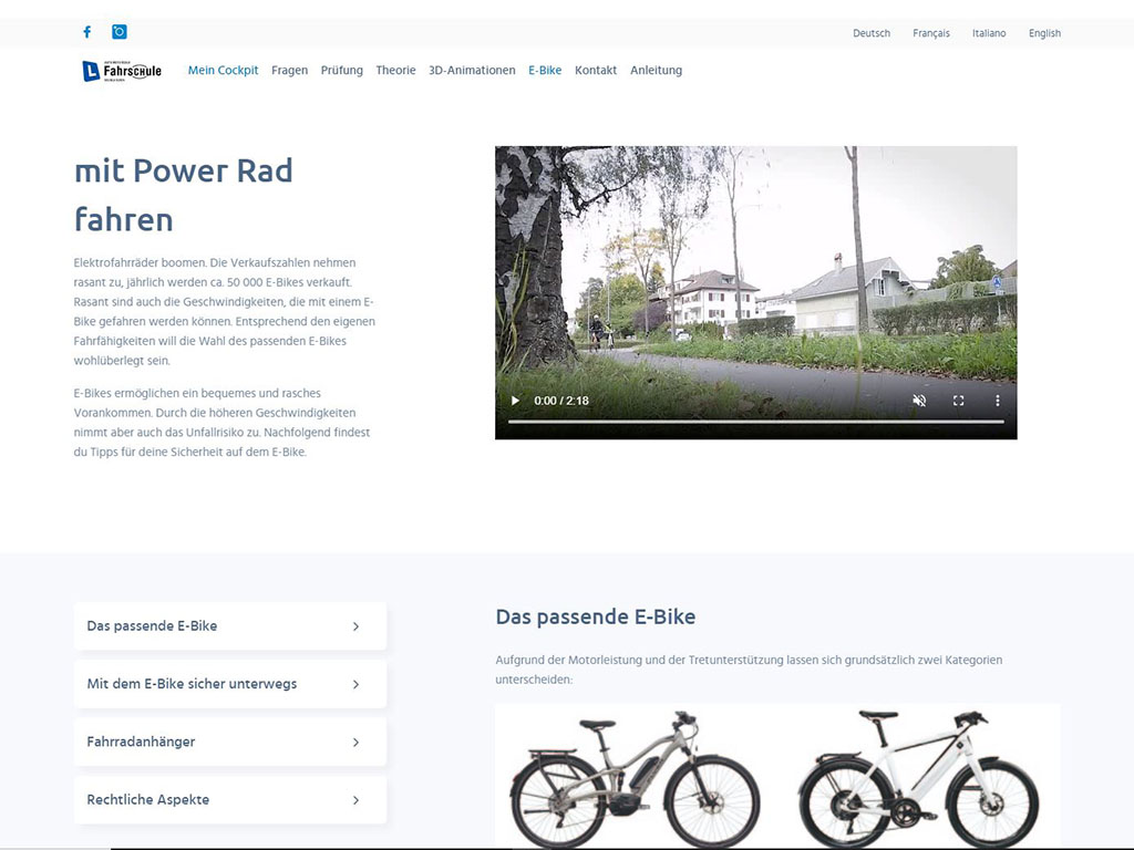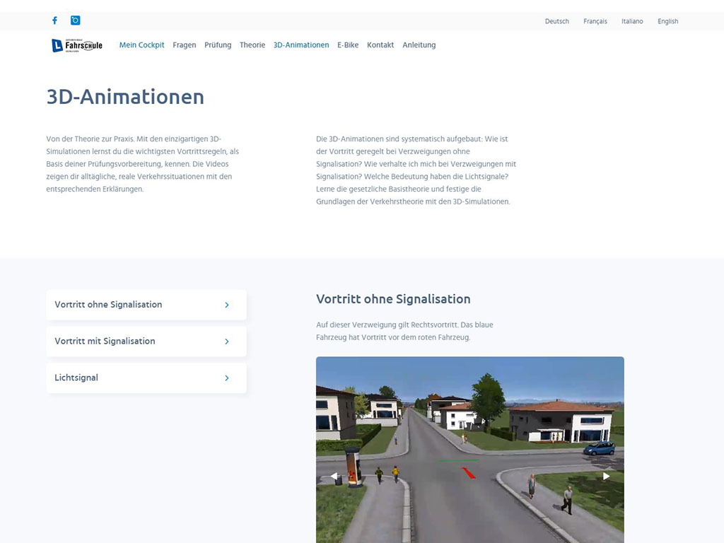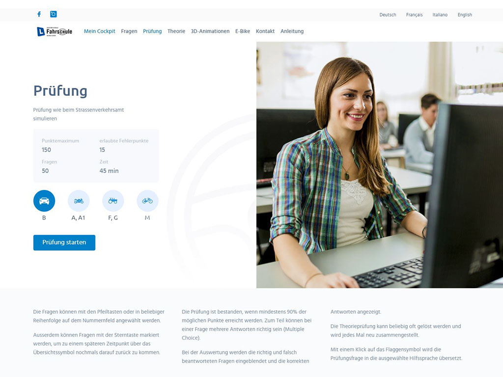 - Simulierte Theorieprüfungen wie beim Strassenverkehrsamt