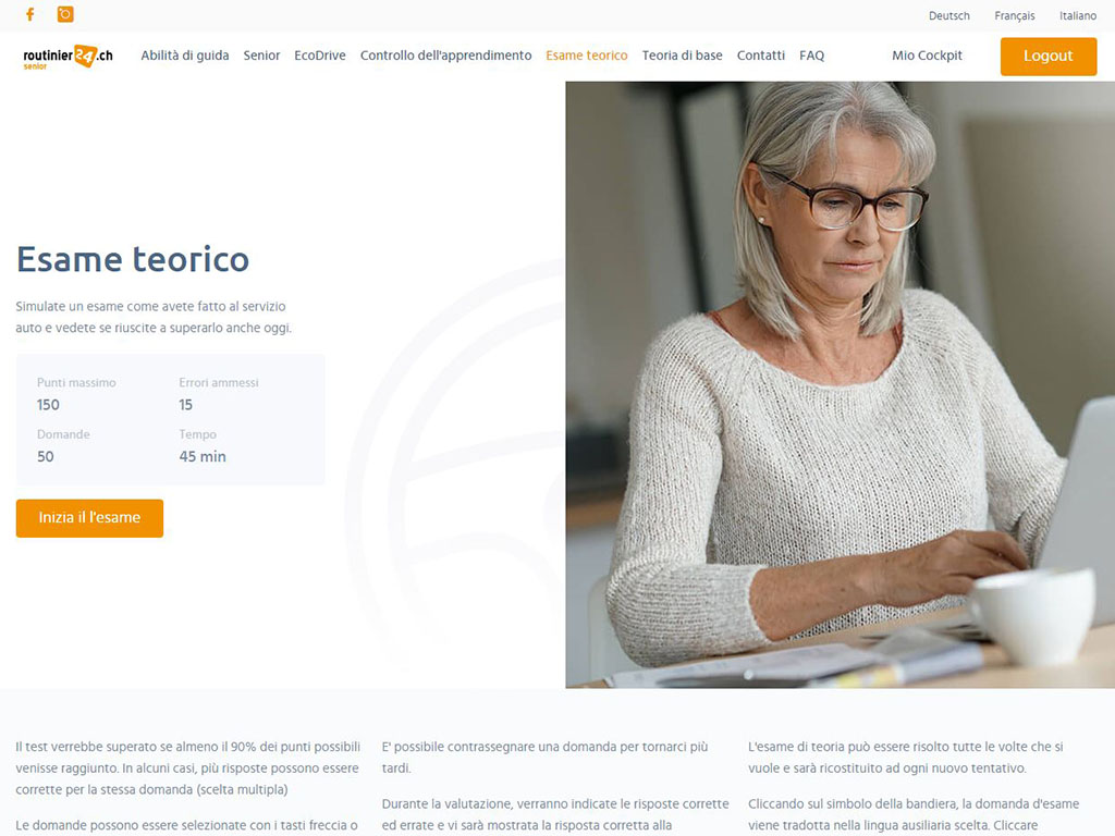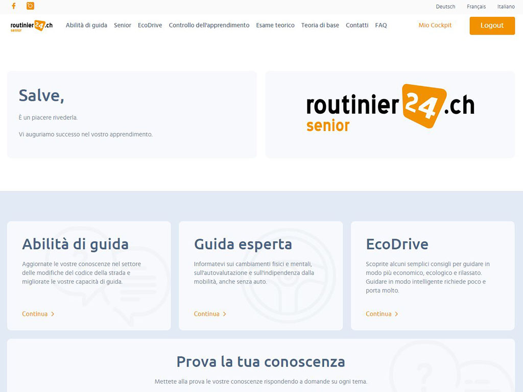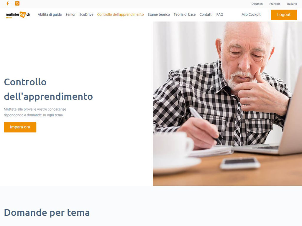 Per tutti gli utenti della strada per i quali l’esame di guida è stato effettuato da tempo. Aumentate la vostra sicurezza sulla strada mantenendo aggiornate le vostre conoscenze e rimanete in mobilità in modo indipendente.